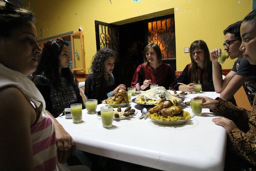 Nous avons fini la peinture sur les jeux et nous finissons celle des toilettes. Nous avançons dans le projet malgré une chaleur étouffante ! Le soir, une soirée est organisée par l'association de Figuig. Le repas était vraiment excellent : toujours bien épicée !