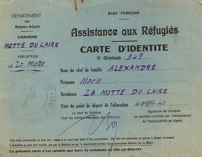 livret de réfugié alexandre