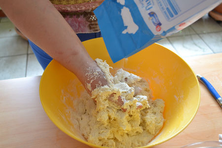 Pétrir en ajoutant assez d'eau pour que ça forme une boule de pâte.
