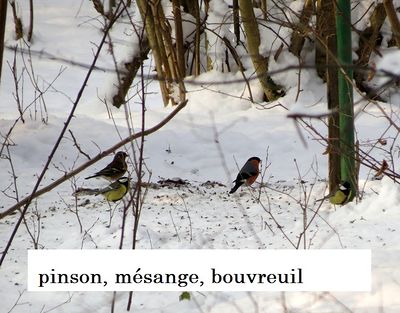 L'association pratique le nourrissage des oiseaux dans quelques abris. Il faut périodiquement livrer des graines dont profitent de nombreux oiseaux sédentaires de nos régions. La récompense pour les livreurs est l'observationn privilégiée des invités multicolores qui picorent tout leur soûl dans et au pied des mangeoires. Mésanges, pinsons, bouvreuils, merles, geais, entre autres, profitent de ce restaurant en plein air.