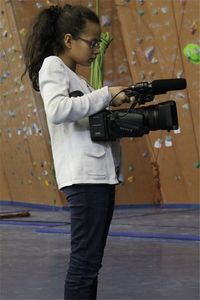 Je m'appelle Sophie, je participe à l'atelier vidéo toute la semaine. Au centre Le Lierre nous avons appris comment utiliser une caméra et aussi à faire des montages. Vendredi, nous sommes partis au complexe multisports de la Milliaire pour rencontrer les ados du centre social Jacques Prévert. D'abord nous avons pris quelques images quand ils escaladaient et nous les avons interviewés chacun leur tour. Pendant la semaine nous avons fait trois montages, trois interviews avec une super ambiance. Je me suis beaucoup amusée avec le groupe et Thomas l'animateur avec qui j'ai beaucoup rigolé.