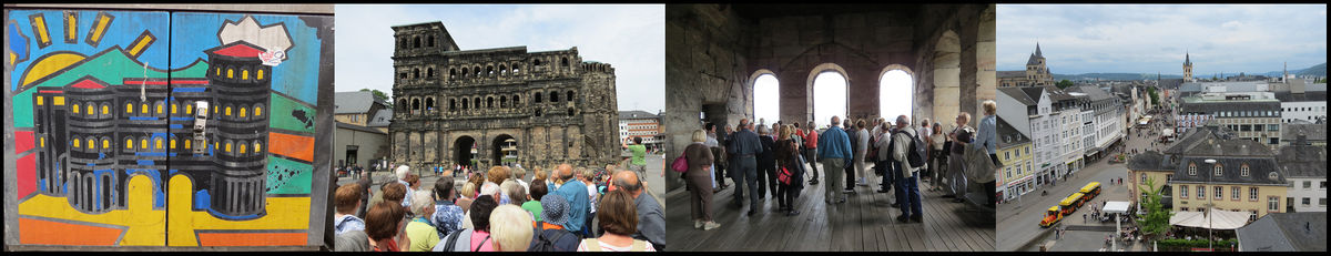 La Porta Nigra est une porte située au nord des remparts de la ville antique (plus de 6 km érigés entre 160 et 200 après J.C.). Son nom lui vient de l'altération du grès blanc due à des micro-organismes. Les premier et deuxième étages ont été transformés en églises au Moyen Age.